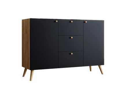 Komoda z szufladami dąb/ czarna/ drewniane nogi