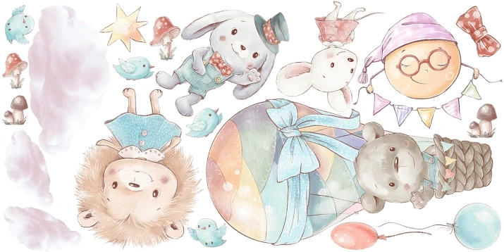 Naklejki na ścianę do pokoju dziecka balon zwierzęta