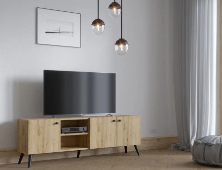 Szafka RTV kolor dąb 160 cm - drewniane nogi