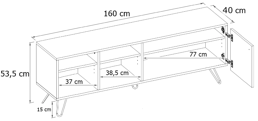 Szafka RTV kolor dąb 160 cm - metalowe nogi