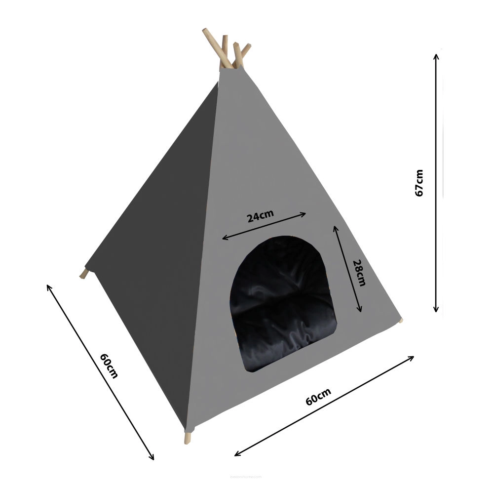 Namiot tipi będzie idealnym schronieniem dla Twojego pupila. Twój pies lub kot pokochają to posłanie, a nietypowy kształt domku idealnie wkomponuje się w nowoczesne wnętrze.
