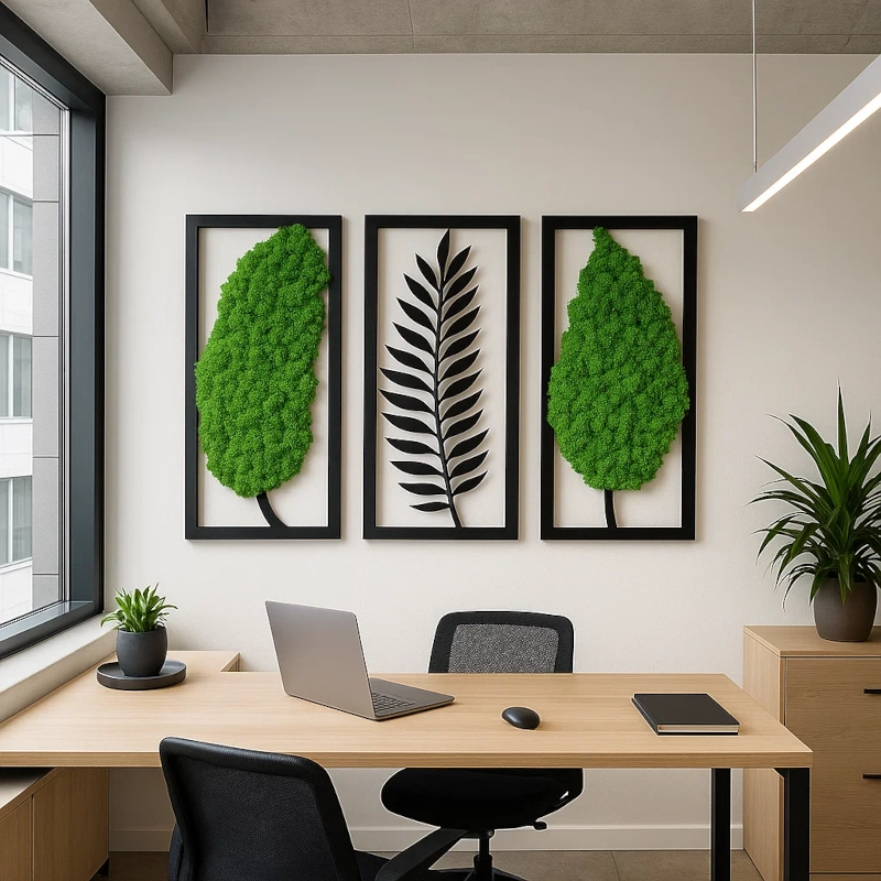 Piękna dekoracja z chrobotkiem- ażurowy tryptyk! Ponadczasowa, niewymagająca zabiegów zielona dekoracja.