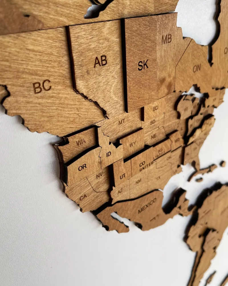 Drewniana Mapa Świata 3D w kolorze dąb