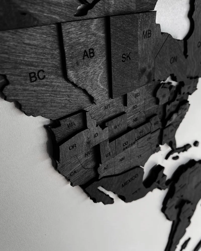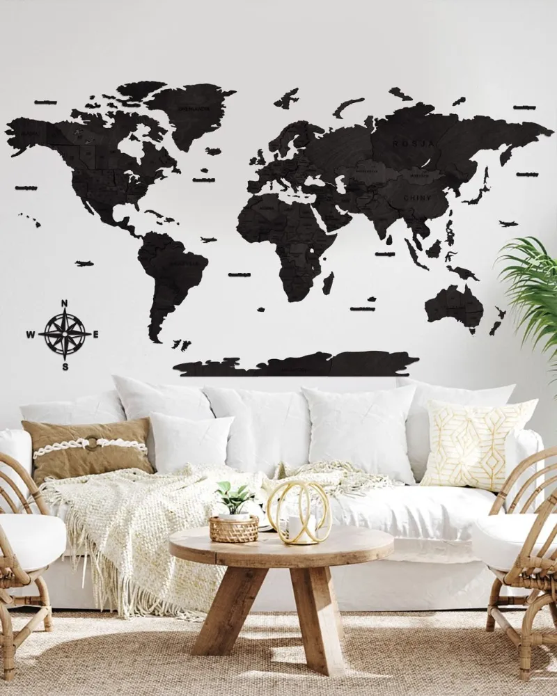 Drewniana Mapa Świata 3D w kolorze heban