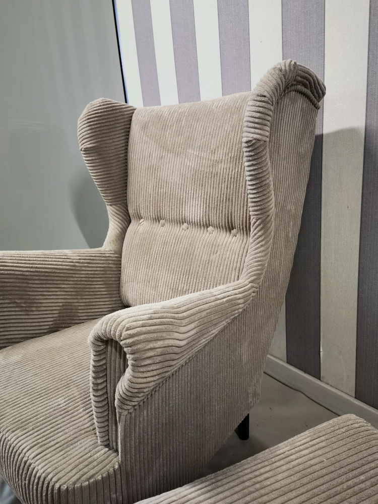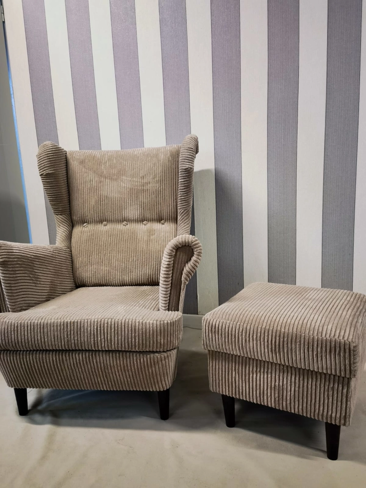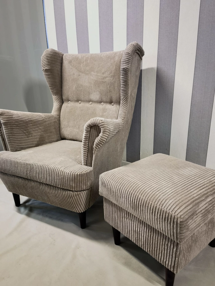 Fotel uszak sztruks Poso z podnóżkiem