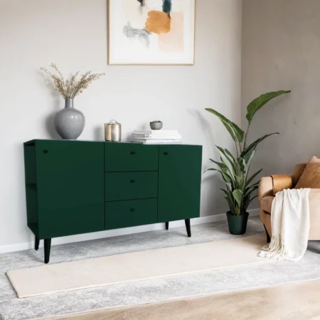 Komoda z szufladami drewniane nogi zielony Szmaragd