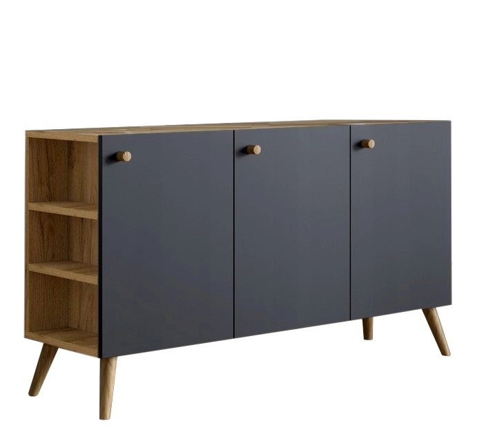 Komoda Taklax - kolor dąb/ czarny / drewniane nogi