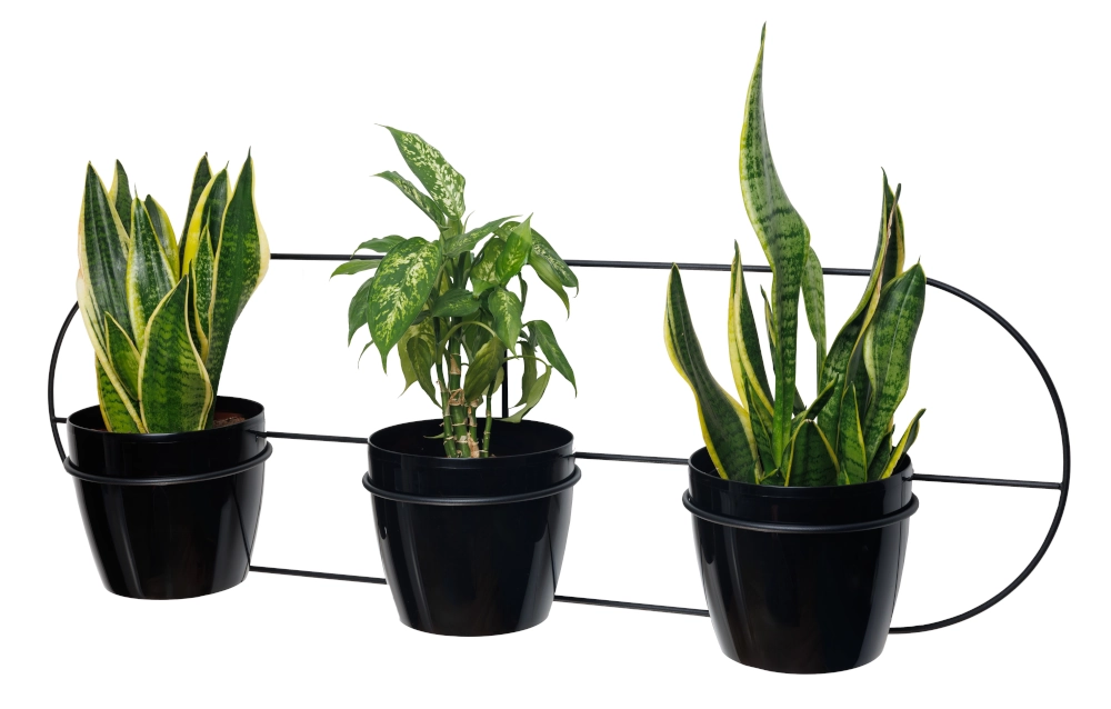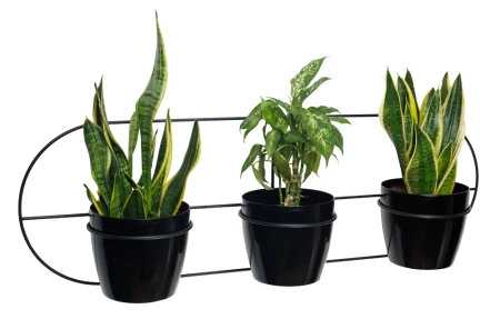 Kwietnik ścienny metalowy + osłonki potrójny czarny