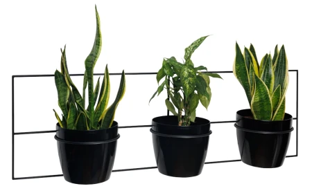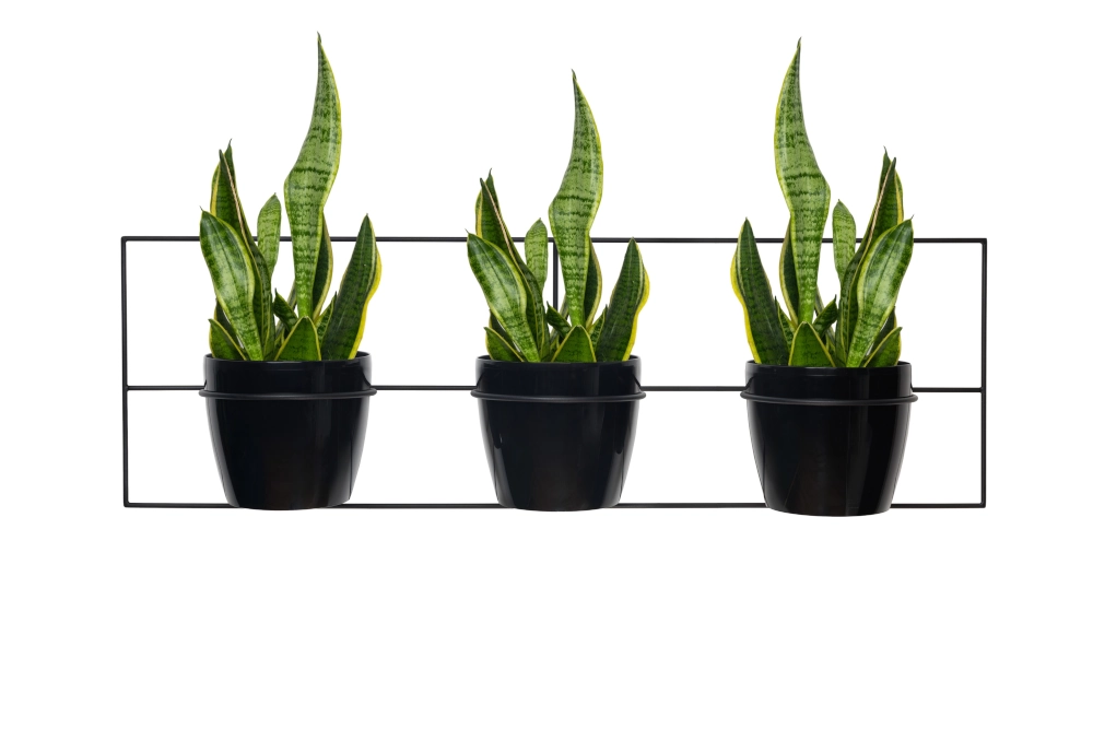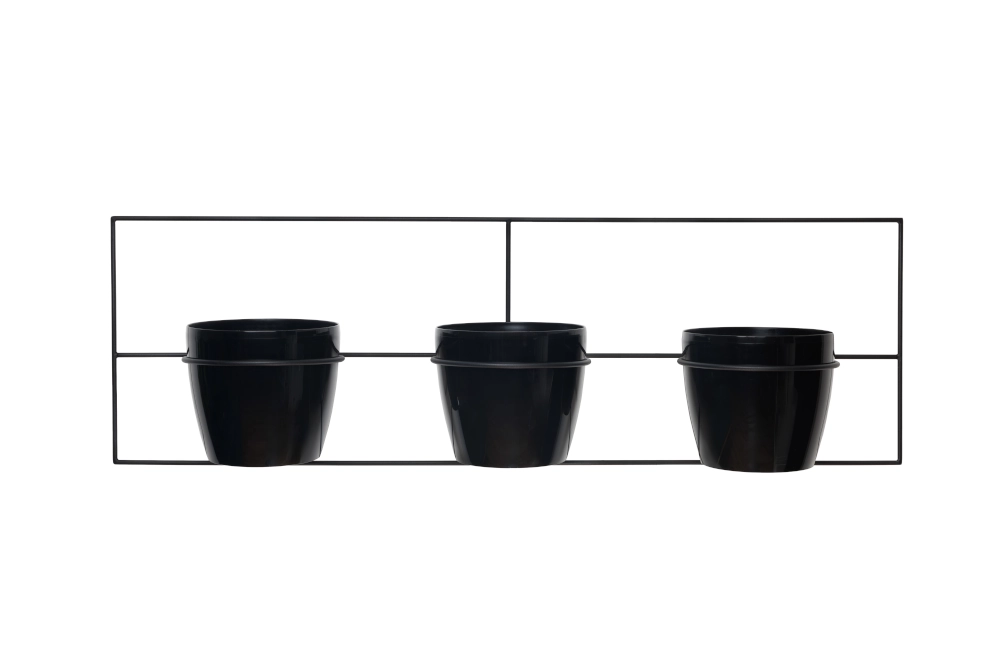 Kwietnik ścienny metalowy + osłonki potrójny czarny