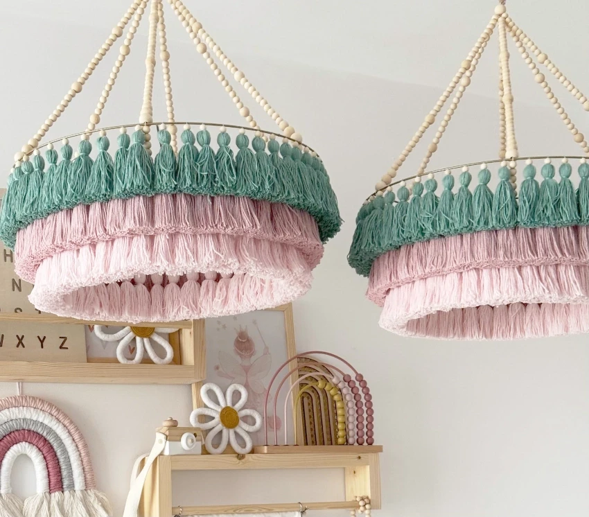 Lampa abażur do pokoju dziecka sznurek i koraliki