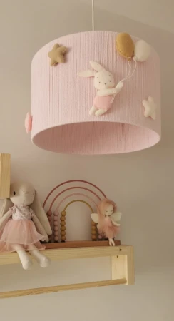Lampa do pokoju dziecka- różowy abażur z królikami