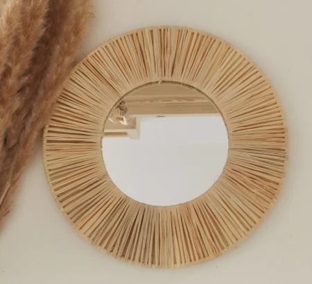 Lustro z rafii pięknie przyozdobi wnętrze Twojego domu. Jest to niezbędna dekoracja w domu, w którym dominuje naturalny styl.
