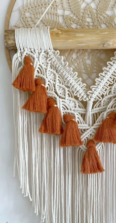 Makrama jest oryginalną dekoracją do pomieszczeń w stylu rustykalnym, boho, urban. Świetnie zastąpi obraz lub stworzy kompozycję z obrazkami.