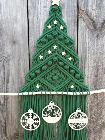 Makrama dekoracyjna Choinka z bombkami grawer
