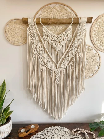 Piękne, starannie plecione wzory, z których na pewno będziesz zadowolona. Dzięki zastosowanej technice wykonania makrama będzie cieszyć oko długie lata.