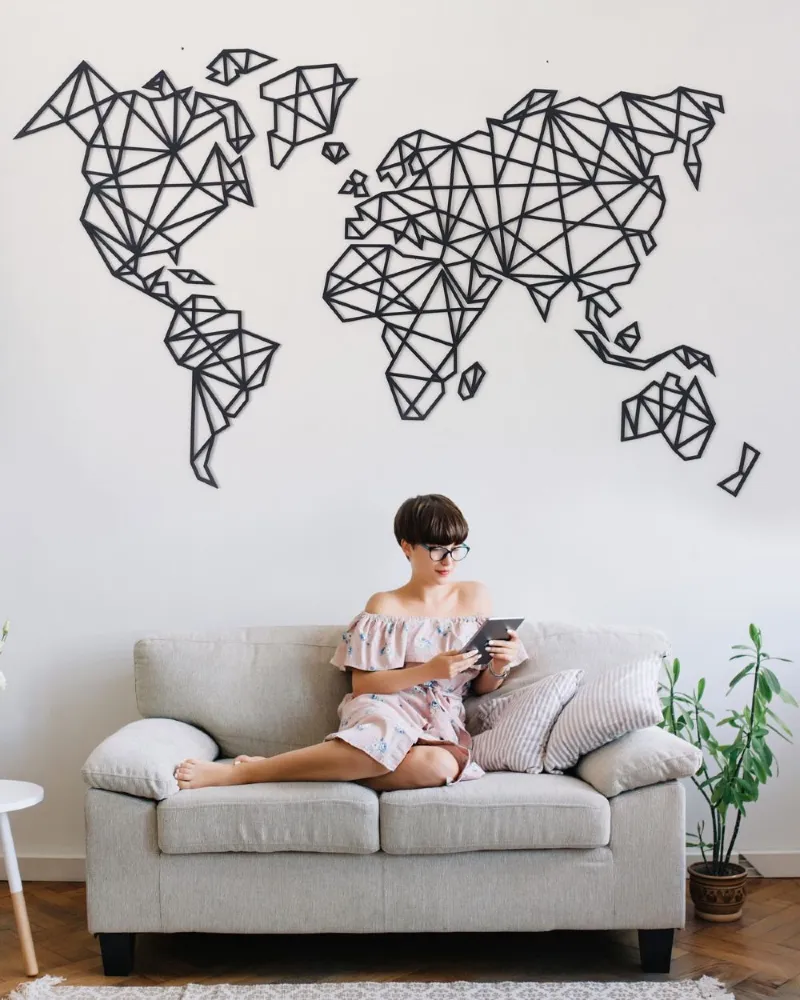 Drewniana Mapa Świata Geometryczna – Nowoczesna Dekoracja Ścienna 3D