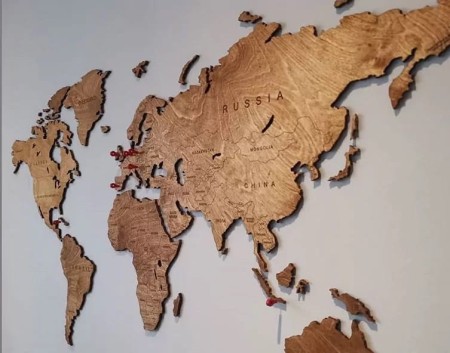 Odkryj naszą mapę świata, wykonaną w całości z drewna przez artystów do dekoracji wnętrz!
