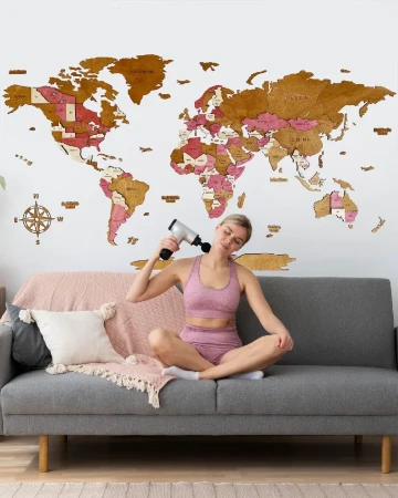 Drewniana Mapa Świata 3D Pinky + zestaw montażowy