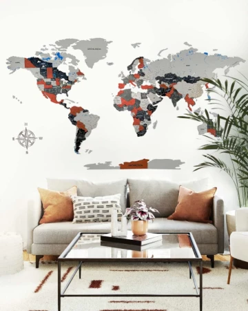 Drewniana Mapa Świata 3D Premium Ruby + szablon+ klej montażowy