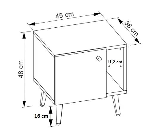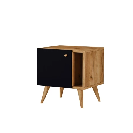 Szafka nocna - kolor dąb / czarny / drewniane nogi