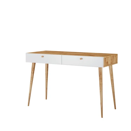 Biurko, które z powodzeniem sprawdzi się jako biurko do pracy w biurze, domu czy jako toaletka w sypialni. Nogi z litego drewna bukowego zapewniające nie tylko ładny wygląd, ale również stabilność konstrukcji. Modny mebel, który poprzez swój minimalizm zdobywa duże grono zwolenników.