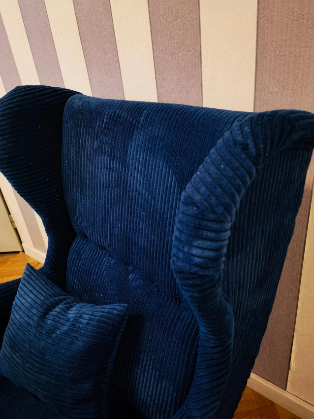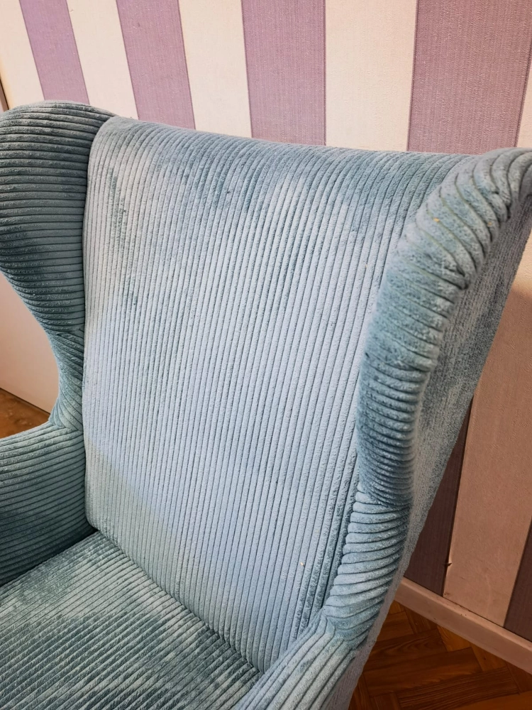 Nowoczesna tkanina w ciekawej kolorystyce sprawia, że fotel wpisuje się w najmodniejsze aranżacje.