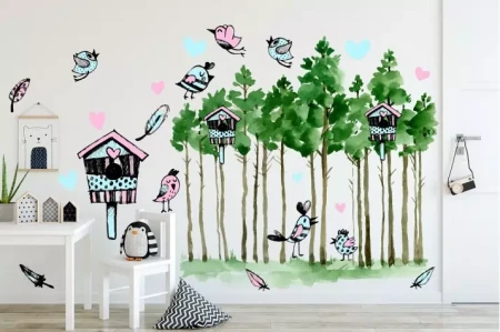 Naklejki dla dzieci na ścianę zwierzątka drzewo