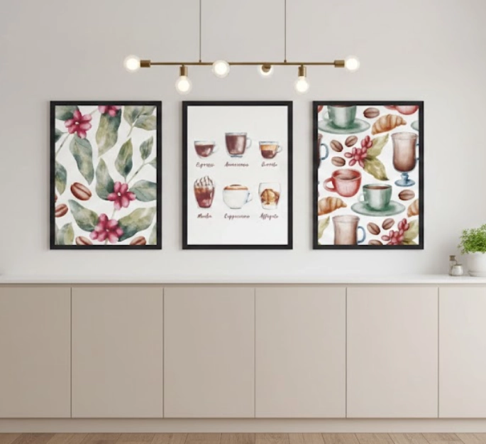 Odkryj magię porannej kawy na nowo dzięki temu artystycznemu zestawowi trzech plakatów, który łączy subtelność akwareli z miłością do najlepszych naparów. Dzięki ciepłej palecie barw i wysokiej jakości detalom, te grafiki staną się nie tylko piękną dekoracją, ale również codzienną inspiracją do celebrowania chwil z ulubionym kubkiem w dłoni.