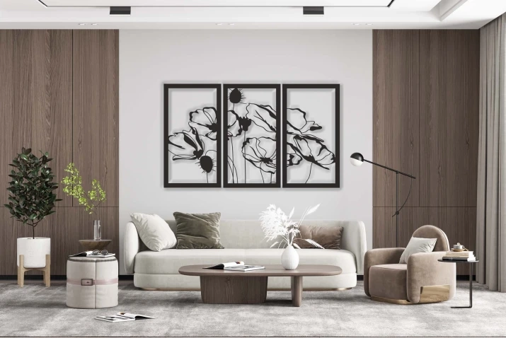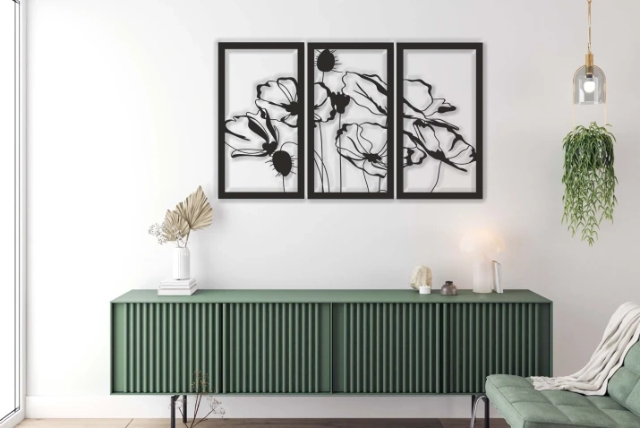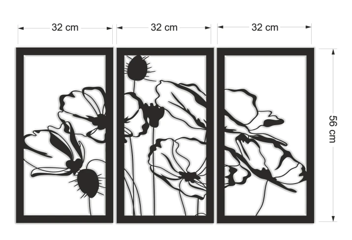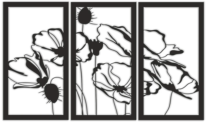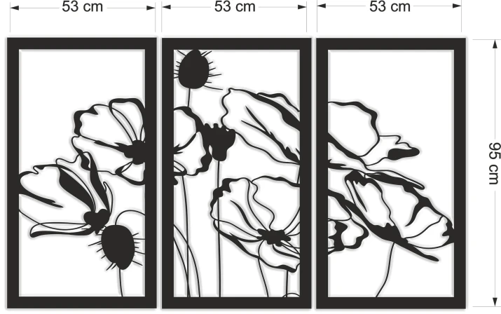 Ażurowy obraz tryptyk panel dekoracyjny maki