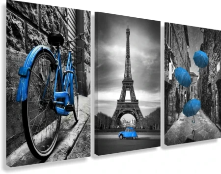 Obraz na płótnie canvas tryptyk rower Wieża Eiffla