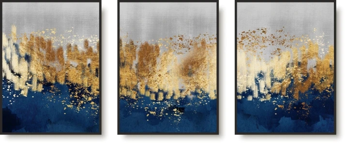 Zestaw ten idealnie komponuje się z szarościami, betonem architektonicznym oraz meblami o minimalistycznej formie, stanowiąc doskonałe dopełnienie nowoczesnego salonu lub gabinetu. Wybierz plakaty abstrakcyjne granat i złoto, aby wprowadzić do swojego domu odrobinę luksusu w najbardziej stylowym wydaniu.