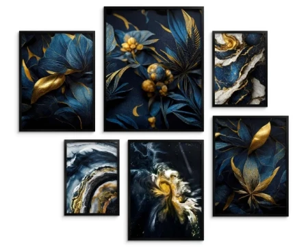Zestaw plakatów 6 szt, plakaty granatowe kolory