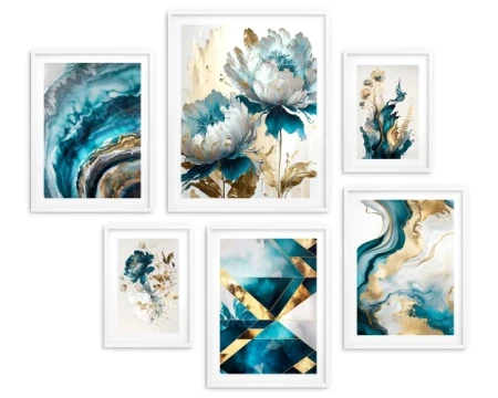 Zestaw plakatów 6 szt, plakaty turkusowe kwiaty