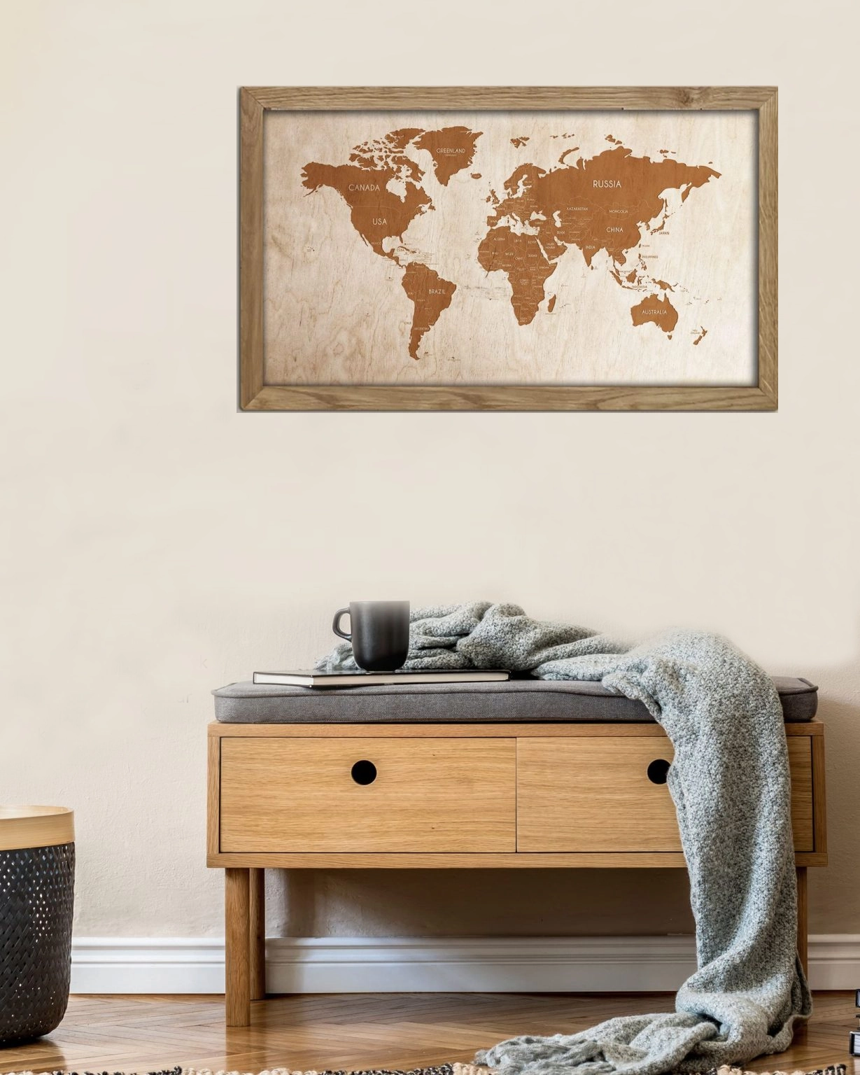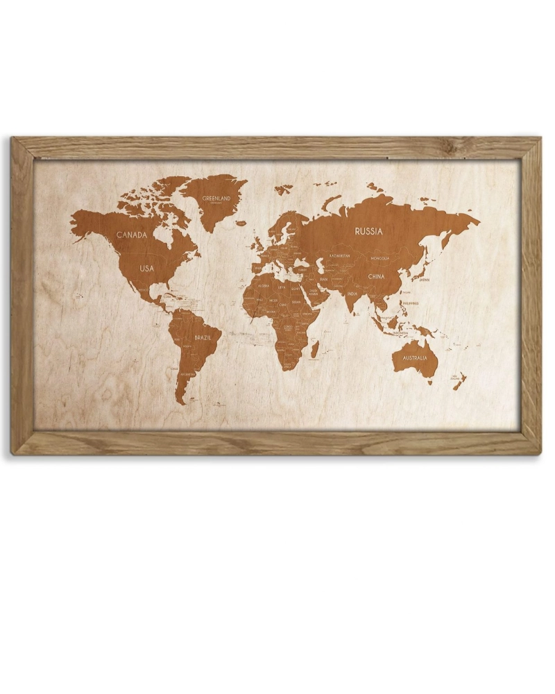 Drewniany obraz – Mapa Świata w dębowej ramie