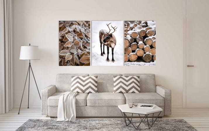 Nowoczesny zestaw obrazów tryptyk na płótnie canvas zima