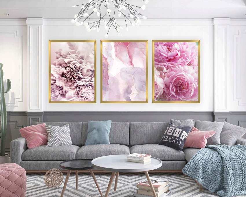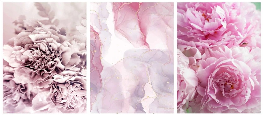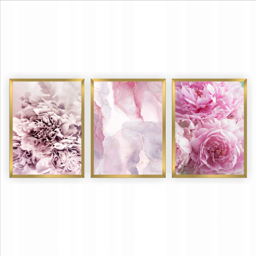 Zestaw plakatów 3szt - tryptyk różowe kwiaty