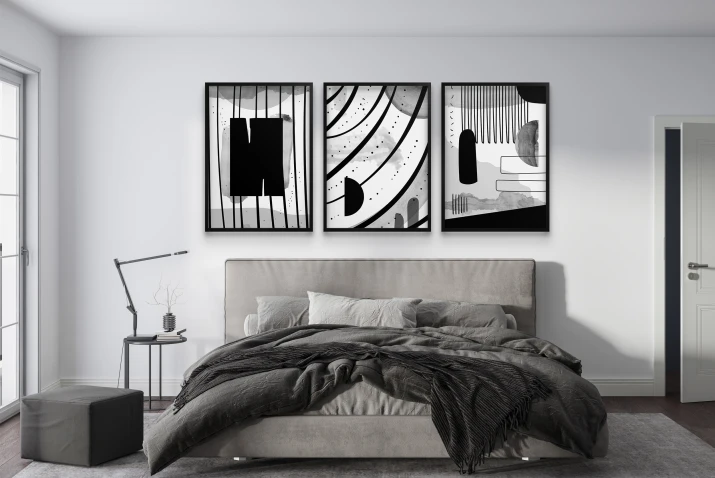 - Wyrazista Abstrakcja: Grafiki przyciągają wzrok, zachowując jednocześnie elegancję dzięki monochromatycznej palecie.