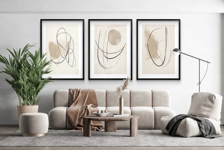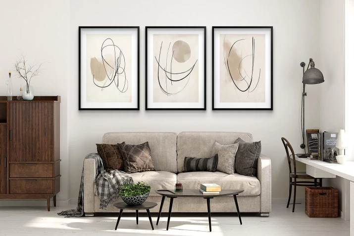 - Czysta Abstrakcja: Grafiki wprowadzają do wnętrza intrygujący i artystyczny akcent bez konieczności dobierania motywu.