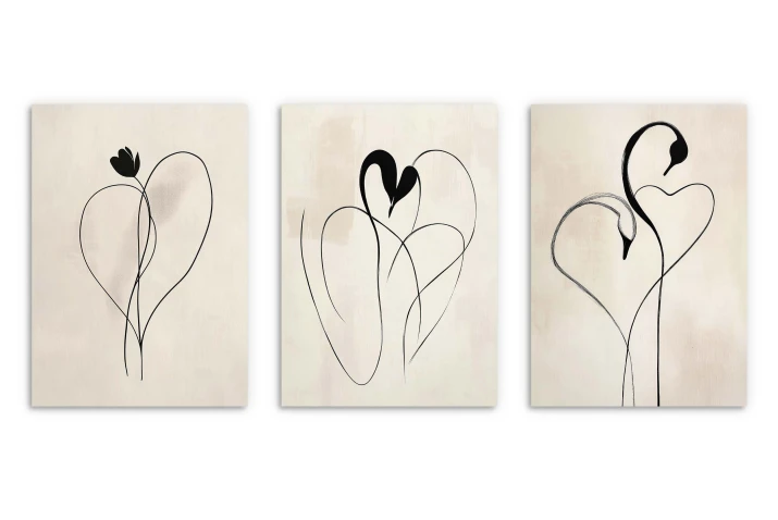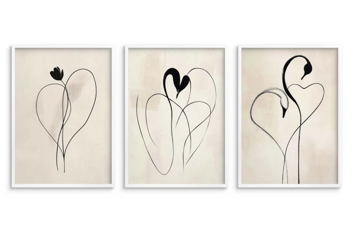 Grafiki są umieszczone na tle w ciepłych, beżowych i piaskowych odcieniach, idealnie pasujących do wnętrz w stylu Boho oraz Skandynawskim.