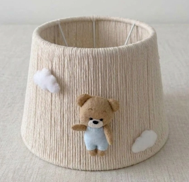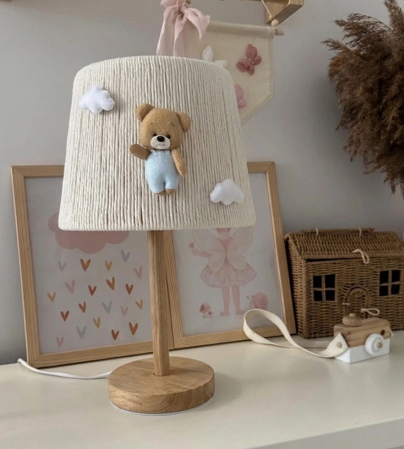 Abażur do lampki nocnej, wykonany ręcznie, co dodaje jej unikalnego charakteru i oryginalności.