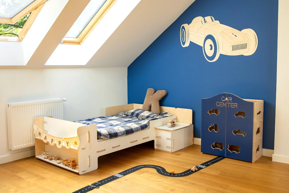 Stwórz kreatywną i przyjazną przestrzeń do zabawy i nauki! Auto składa się z kilku elementów, które łatwo zamontujesz na ścianie. To doskonała propozycja dla rodziców, którzy chcą, by ich dzieci miały kreatywną przestrzeń do rozwoju.
