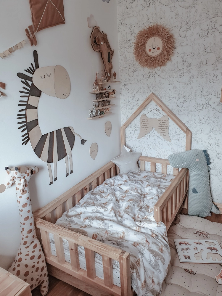Ten składany z kilkunastu elementów zwierzak to nie tylko dekoracja, ale i puzzle. Zanim trafi na ścianę, możecie razem z dzieckiem ułożyć go na podłodze, ciesząc się chwilą wspólnej, kreatywnej zabawy.