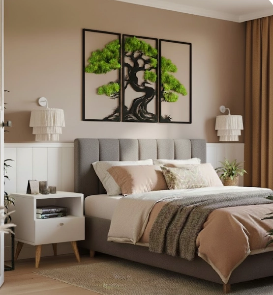 Dekoracja z chrobotkiem | Tryptyk Ażurowy do sypialni