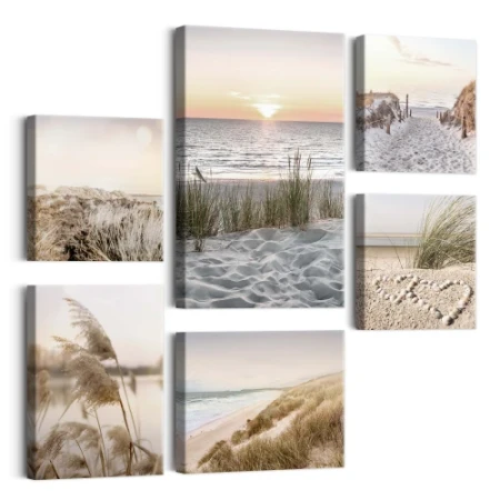 Duży Zestaw Obrazów Plaża i Trawa Pampasowa