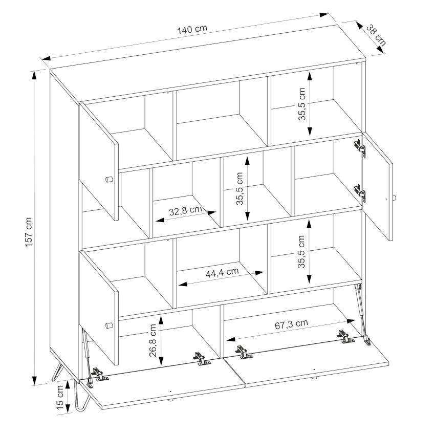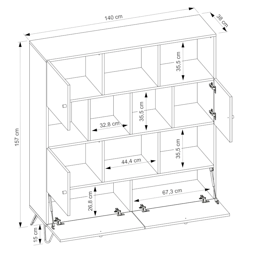 - plecy regału oraz dna szuflad wykonane są z 3 mm płyty HDF