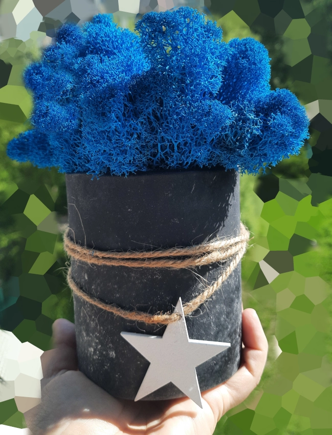 Mech chrobotek | dekoracja w doniczce | niebieski