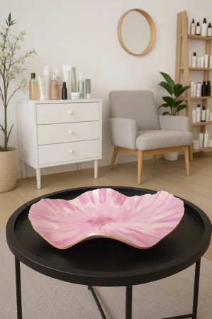 Unikalna Miska Dekoracyjna z Żywicy Epoksydowej – Ręcznie Robiona, Różowe Akcenty, Złote Wykończenie