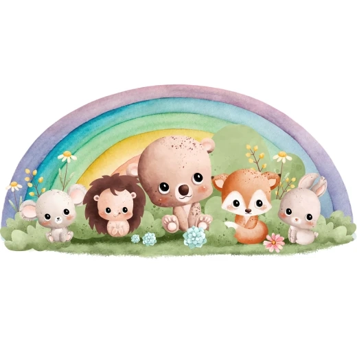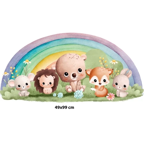 Naklejka na ścianę - Zwierzątka i tęcza