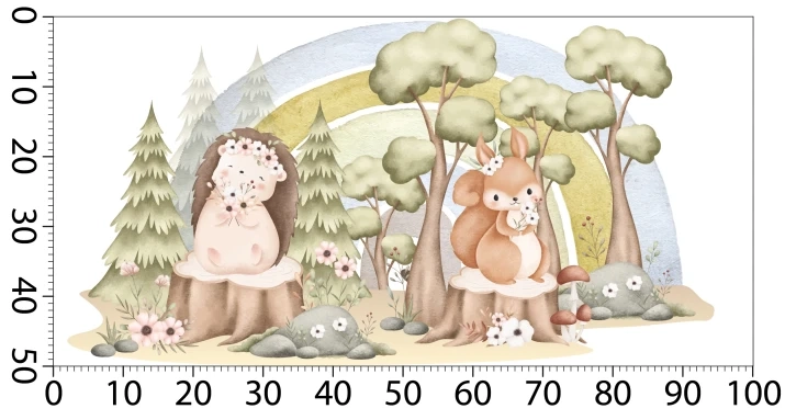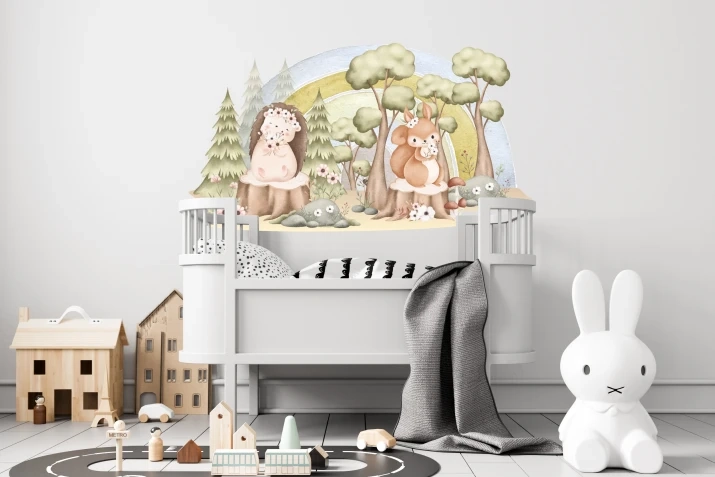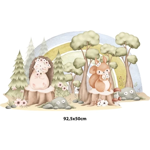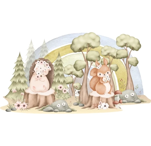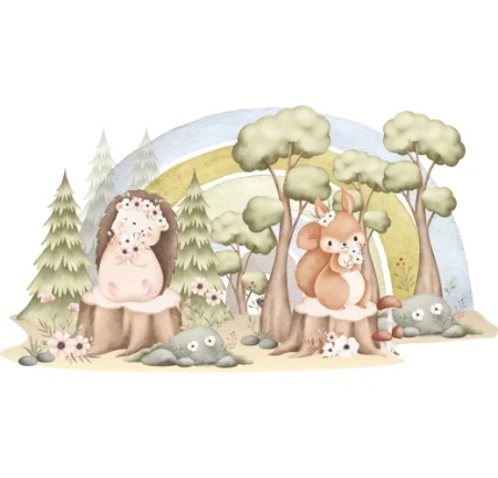 Naklejka na ścianę dla dzieci | Leśne zwierzątka i tęcza
