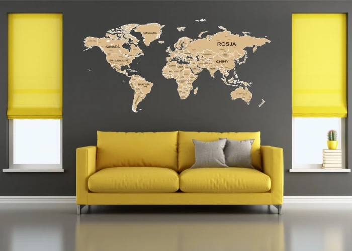 Naklejki na ścianę z mapą świata odmienią każde pomieszczenie. Będą pasowały do pokoju dziecka, salonu, czy biura. Zadowolą każdego dzięki wysokiej jakości i trwałości.